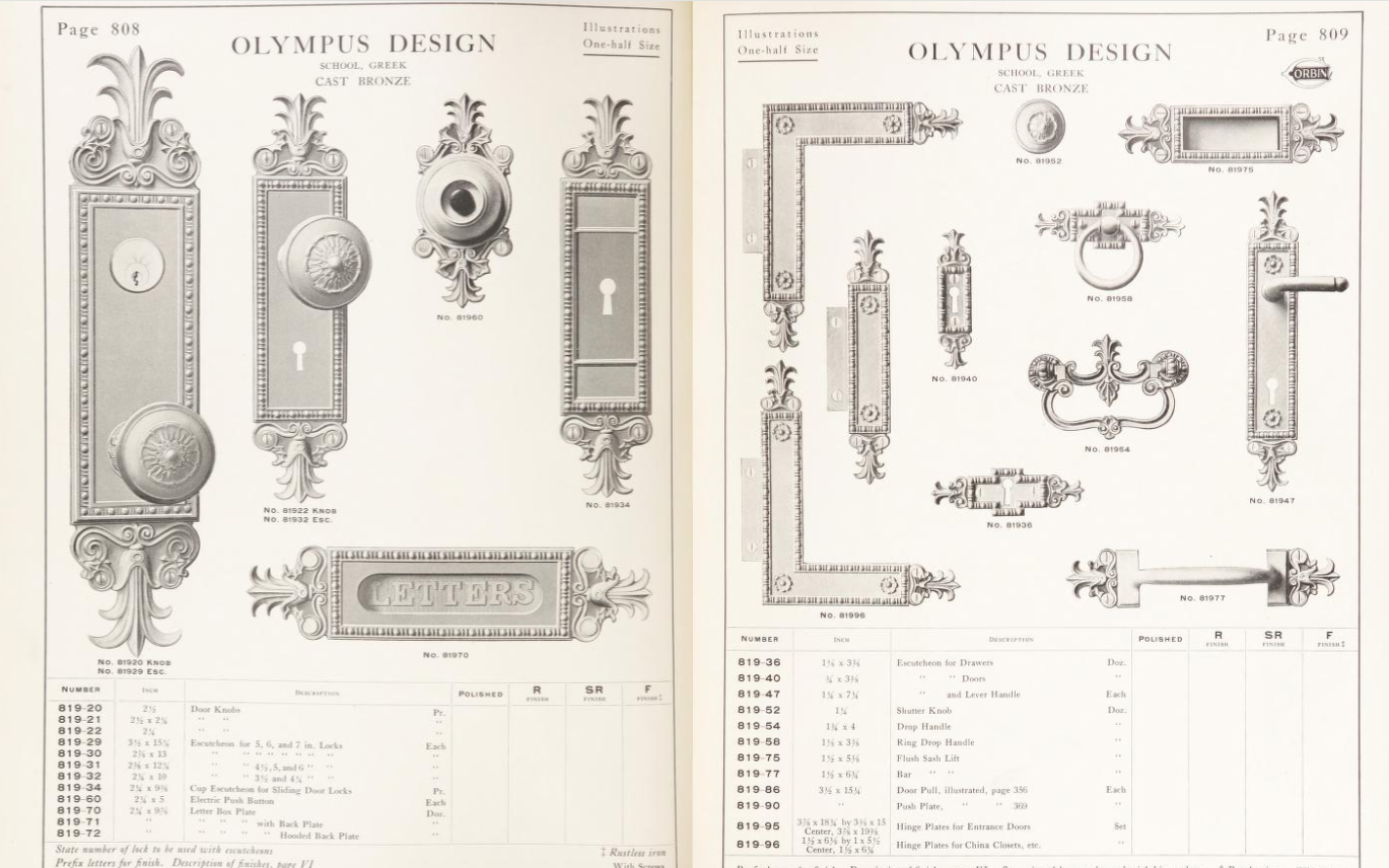 P&F Corbin was founded by brothers Philip and Frank Corbin in New Britain, CT. in 1851. Interestingly, Philip previously worked for the company that would become Russell and Erwin, which Corbin would merge with in 1902. It ran with a number of subsidiary companies in the 1900's including Corbin Cabinet Lock Co., Corbin Screw Company and even a Corbin Motor Vehicle Corporation! Corbin is still in business today under ownership of Assa Abloy under the name Corbin Russwin.